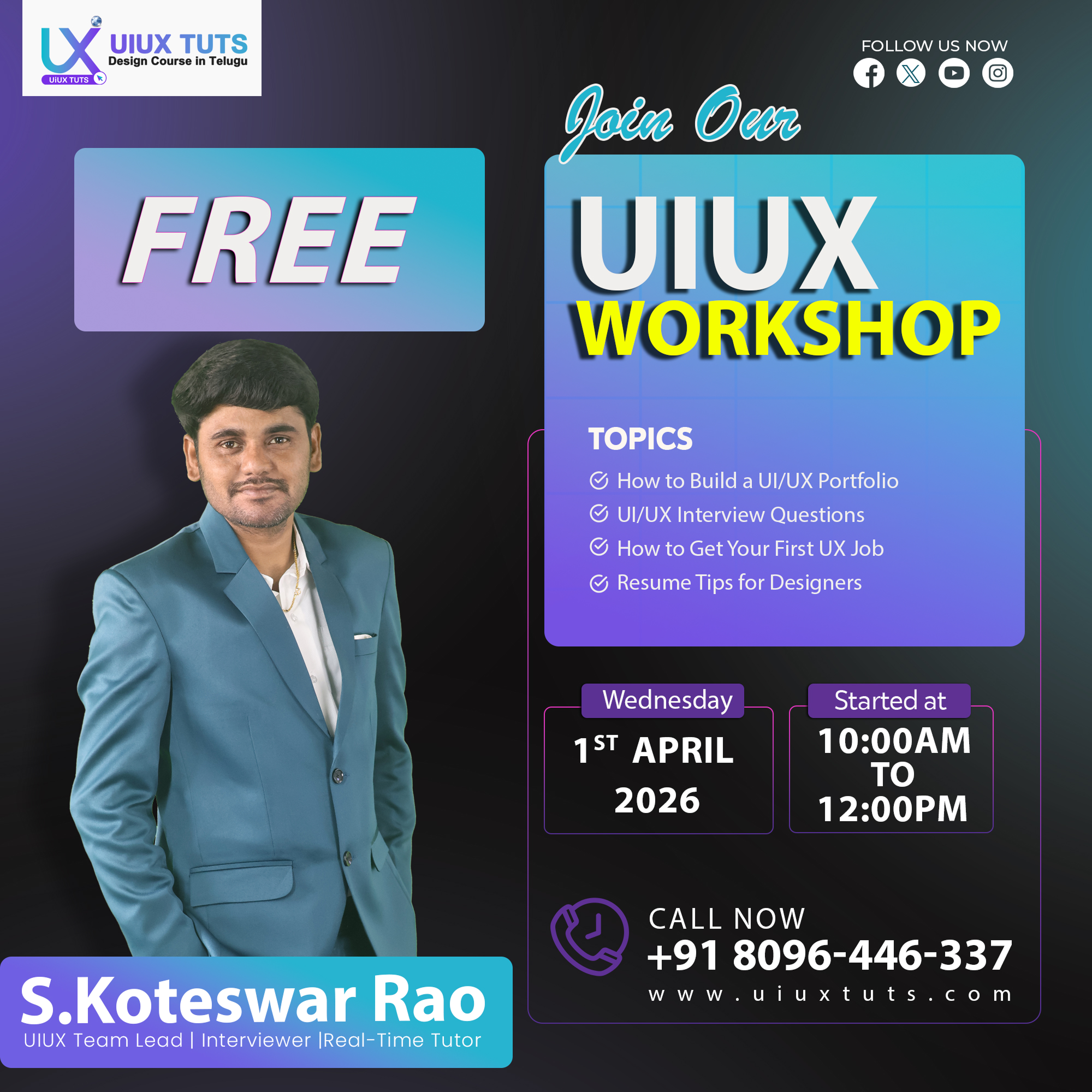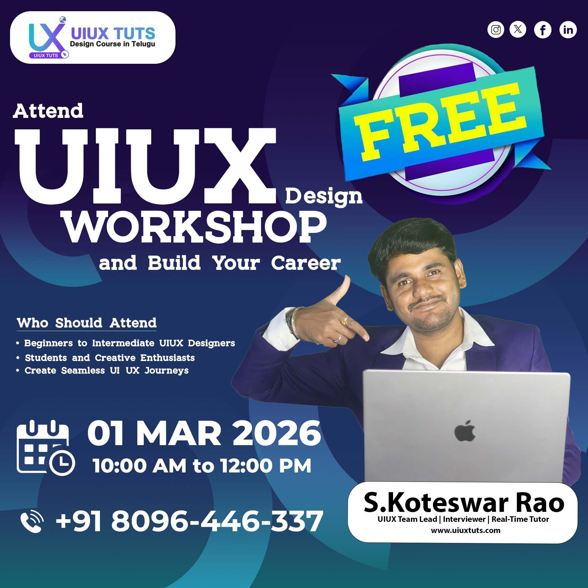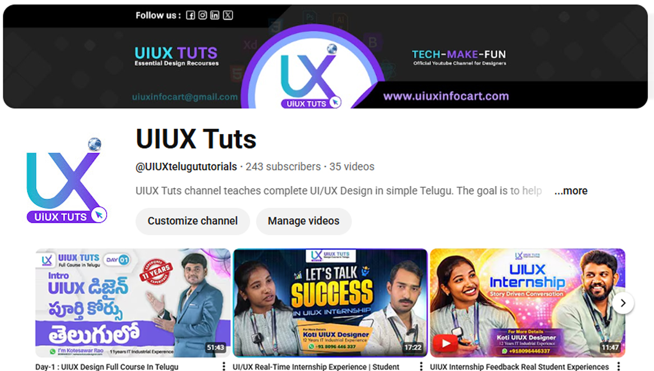I’m Koteswar Rao, a UI/UX professional with over 12 years of industry experience. I’ve worked as a UI/UX Lead, project lead, and interviewer, collaborating with Indian and international clients on real-time projects.